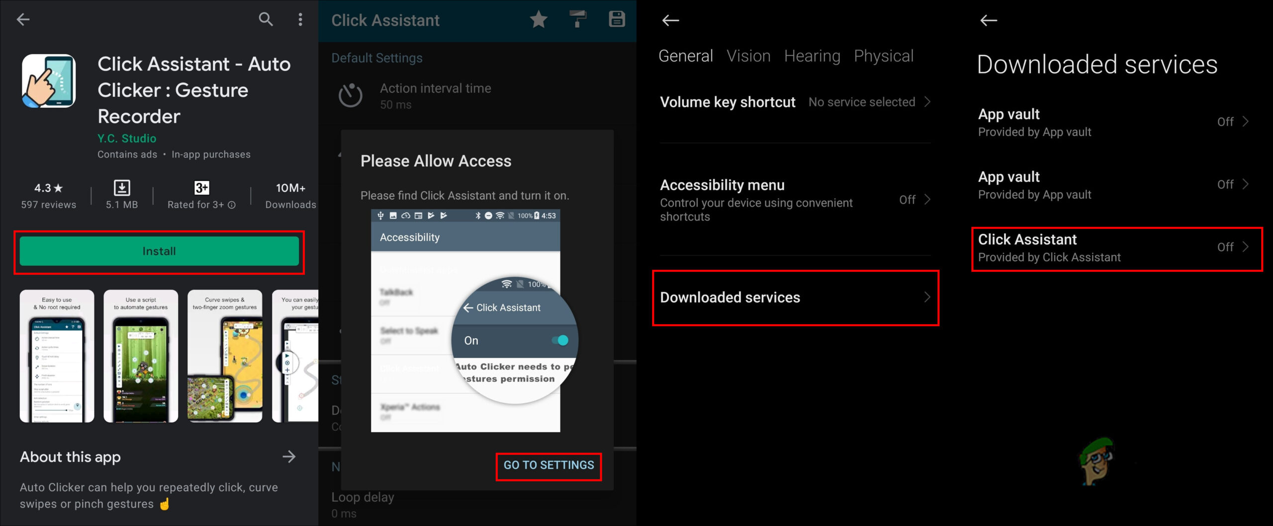 - Go to Google Play Store and search for the Click Assistant – Auto Clicker application. Download the application on your phone.