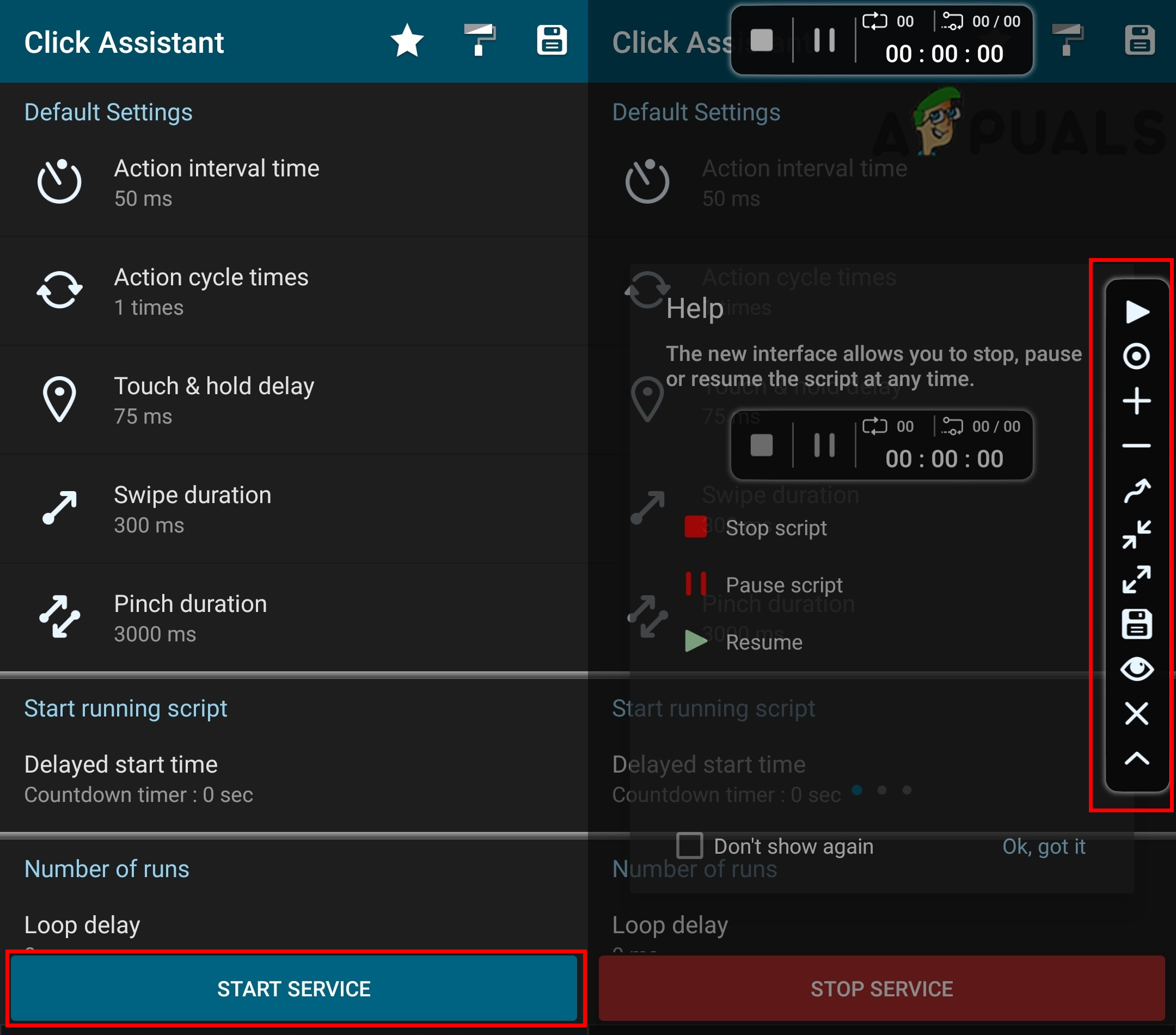 - You can stop the process by tapping on the pause option or simply closing the Auto Clicker application.