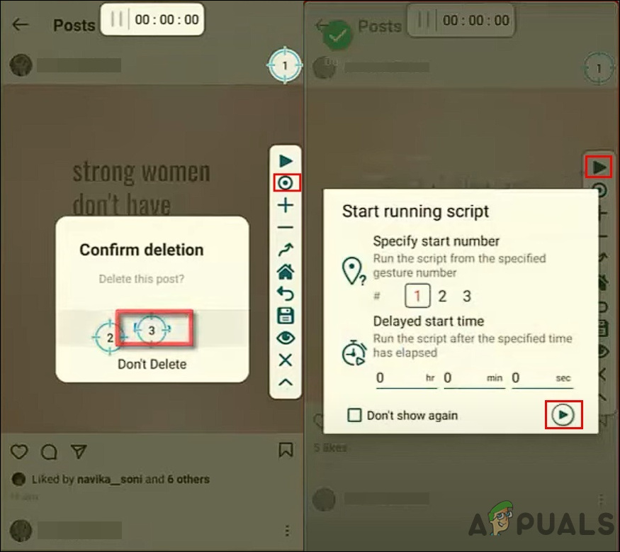 Recording delete steps and repeating - Now simply tap on the Play button for Auto Clicker and you can also site time or just start it by default. It will start following the three steps and removing each post automatically.