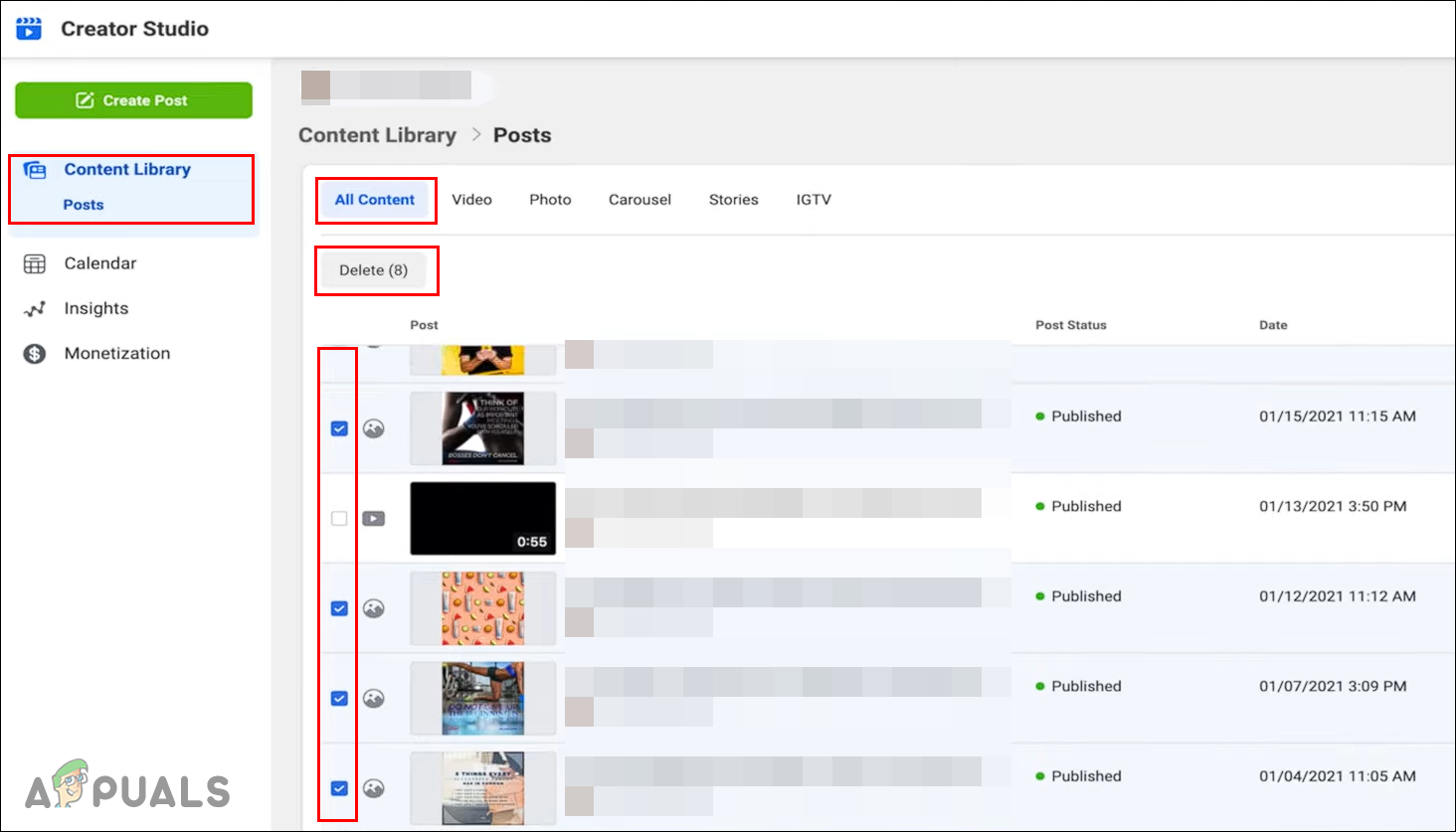 Facebook creator studio is similar to the YouTube studio where you can manage posts and keep track of content across the Facebook pages and Instagram accounts. You can sign in through your Facebook and Instagram accounts. It includes an option where you can select images, videos, or IGTV and delete them. It is a pretty simple and easy-to-use tool. Follow the below steps to see how it works: