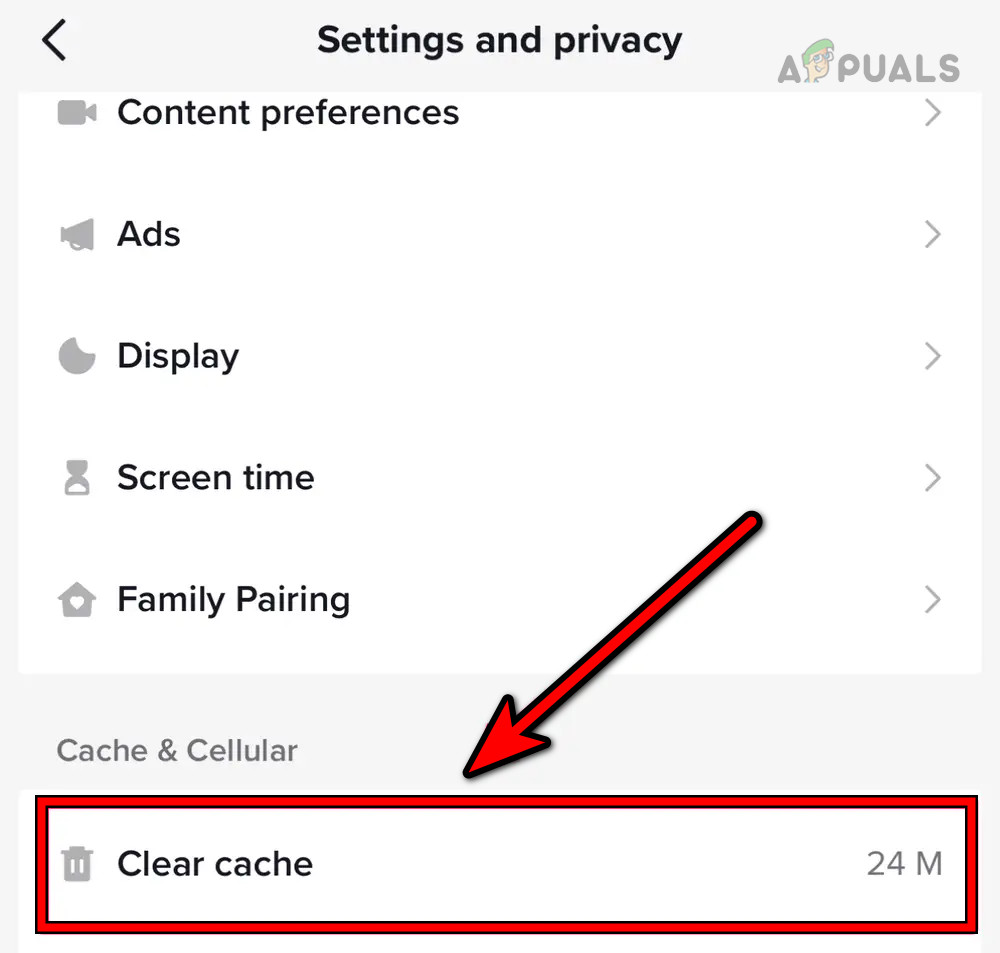 2. Tap on Clear Cache and launch TikTok. Confirm that the issue is resolved. Clear Cache of the TikTok App Through Settings