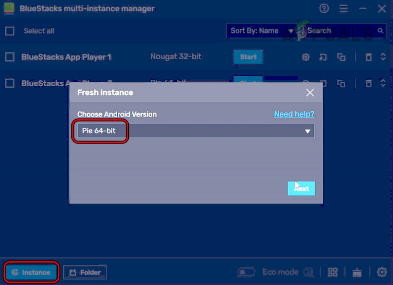 3. Select Pie 64-bit from the Android Version dropdown menu. Create a New Pie 64-bit Instance of BlueStacks