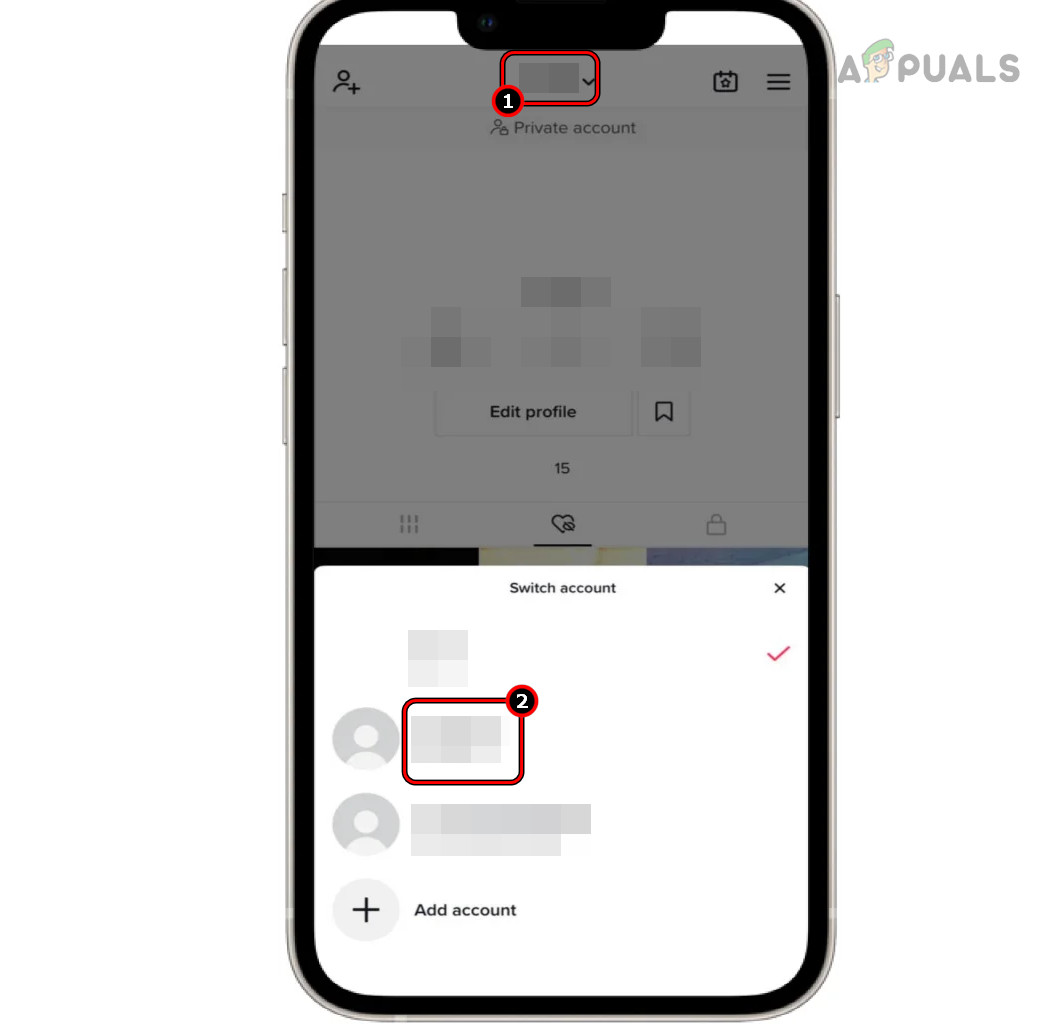 2. At the top of the screen, tap on the dropdown with your username and select the other account. If no other account exists, you can add one. Switch Account on the TikTok App