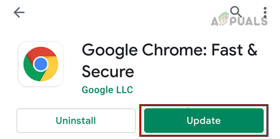 2. If an update is available, tap on Update, and once completed, restart your phone. Update Google Chrome