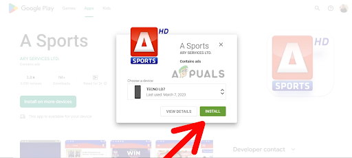 Click on the Install button - A pop-up window will appear, asking you to select the device on which you want to install the app. Choose your Android device from the list and click on “install.