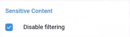 - Find “Sensitive Content” and enable the “Disable Filtering” option.