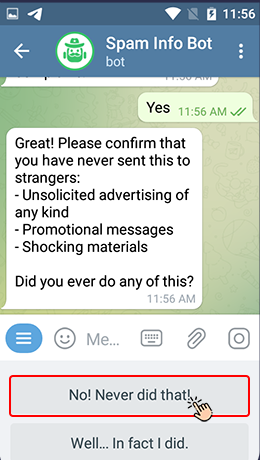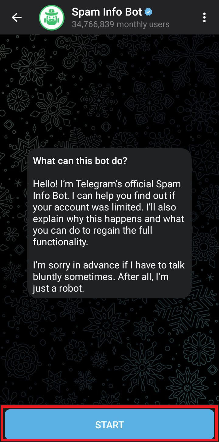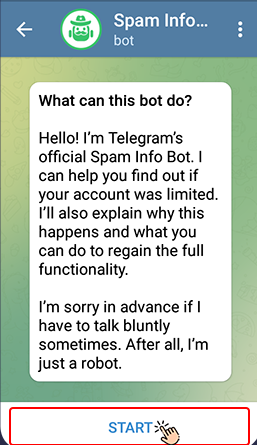 If you do not see the message confirming that no restrictions are applied, it likely means your account has been flagged for violating Telegram’s terms and conditions.If you acknowledge the violation, you can click on “I was wrong, please release me” and provide an explanation. If you believe the restriction was applied by mistake, continue with the following steps: - Click on “Start”.
