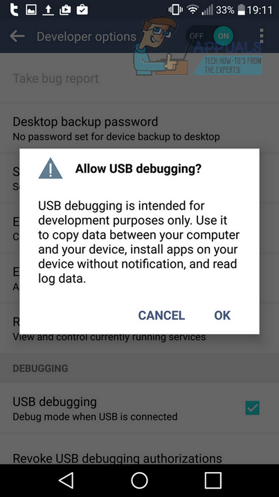 Once installed, or if already installed, accept the next prompt to allow USB debugging