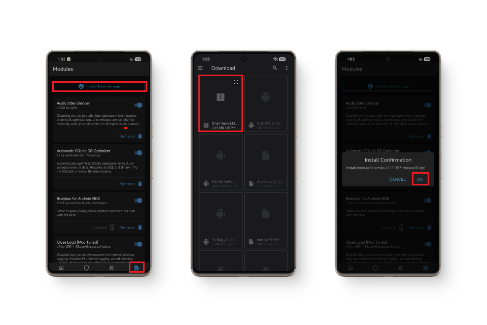 7. Tap on “Install from Storage” and select the downloaded Shamiko module.