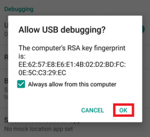 Note: If you have Eclipse or Android Studio installed on your computer, this step is not necessary. - On your Android – Go to Settings, tap on Developer options and enable USB Debugging (if you didn’t already).