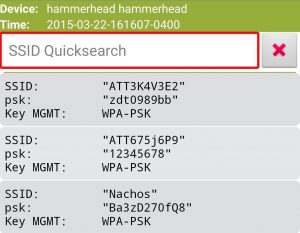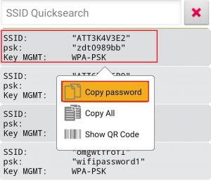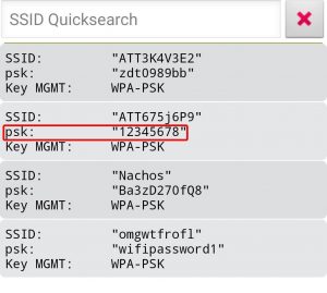 - After a brief waiting period, the screen will populate with a list of all Wi-Fi networks your Android has ever connected to. The password can be located in the psk field.