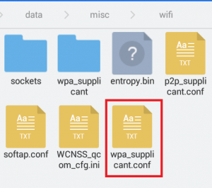 - Tap on wpa_supplicant.conf and open it with ES Note Editor or any other text editor you might have installed.