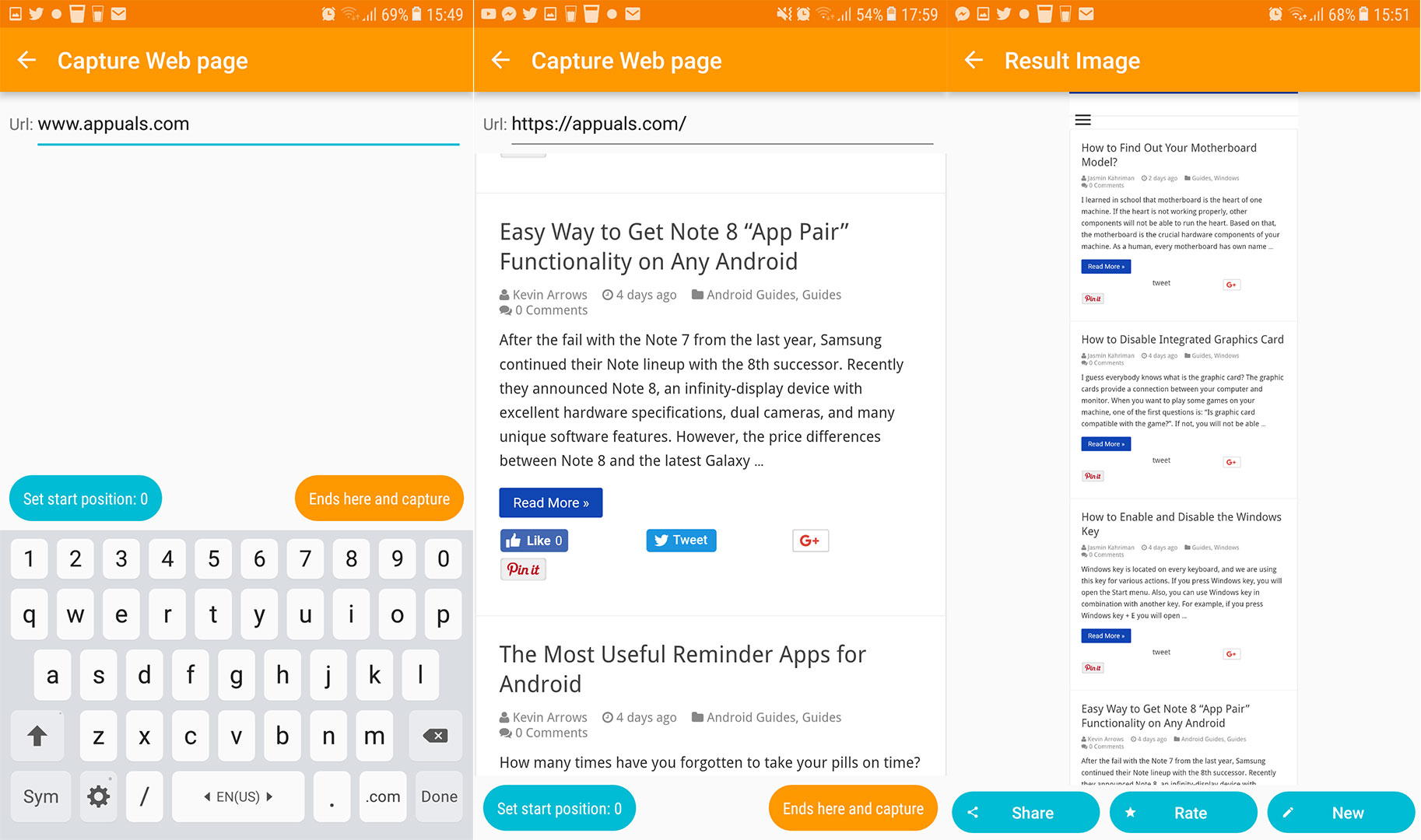 “Capture Web Page” as you can guess, is a dedicated feature for capturing whole websites. You just need to enter the web URL, set the start position, and define the end position. The app will do the rest of the work for you.