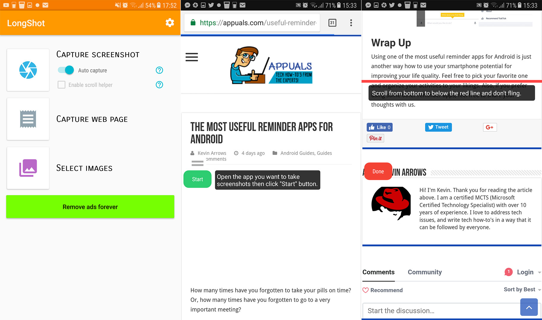 As you can see, featurewise LongShot has a lot to offer, when we talk about taking screenshots. It is a free app with an in-app purchase for an ad-free experience. Here is the link to the Google Play Store LongShot.