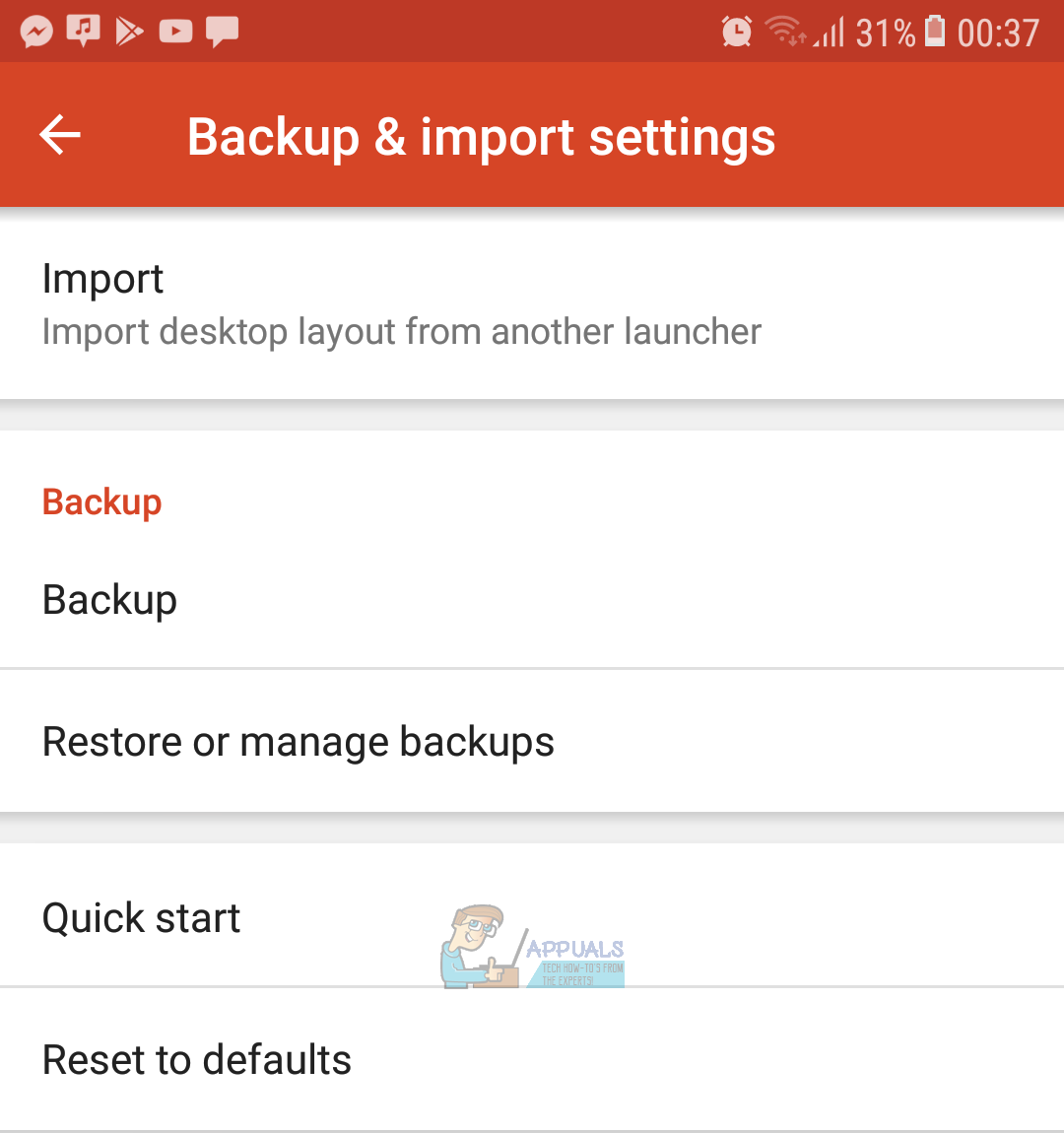 This section is for all of us who want to backup our home screen look and import one from our previous launcher. Also, here you can manage where to save your backups.