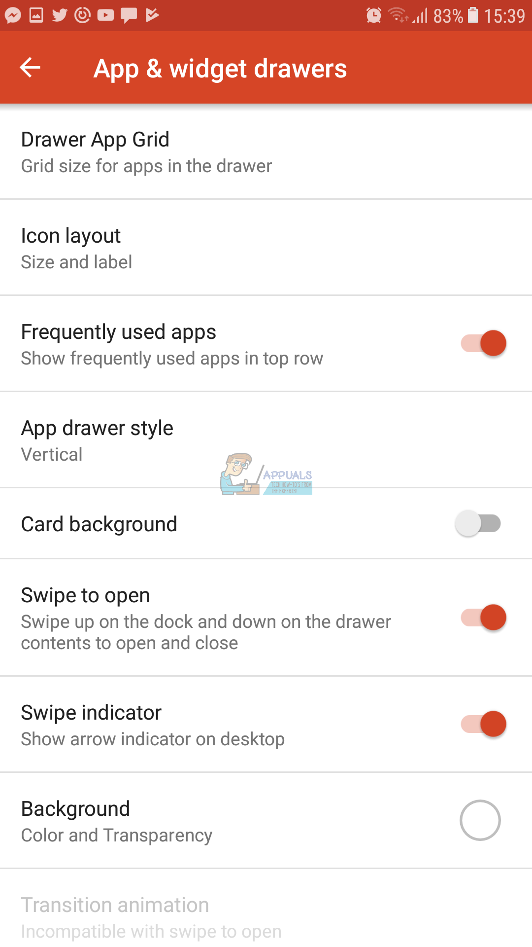 The next on the list is App & Widget Drawers. Here you will find all the settings needed to customize your app & widget drawers. For example, how many apps you want on one page and the icon layout. Also, you can change the drawer style, the way of access to the drawer, and many more visual settings.