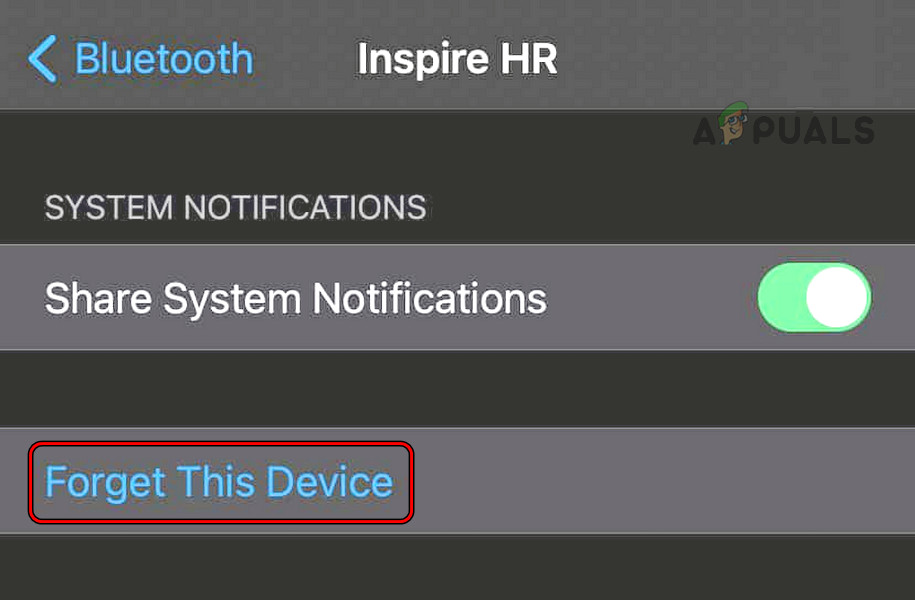 2. Select the paired Fitbit device and choose Forget This Device. Forget the Fitbit Device in the Device’s Bluetooth Settings