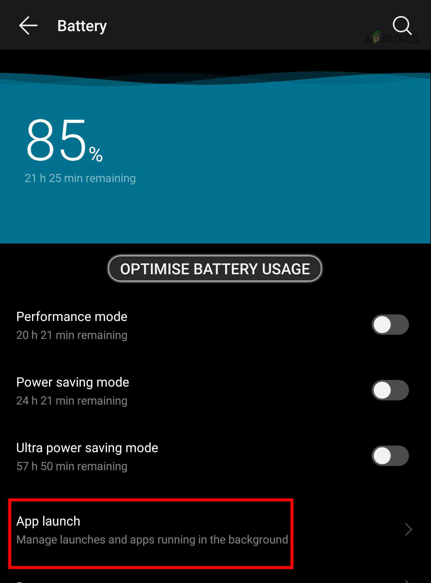 1. Access Settings > Battery > App Launch. Open App Launch in the Battery Settings