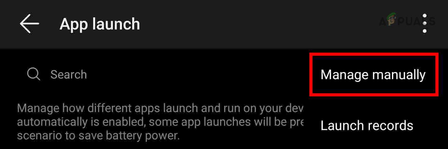 2. Click the three vertical dots in the upper right and choose Manage Manually. Open Manage Manually in the App Launch