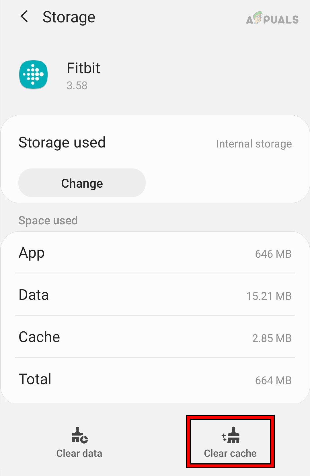 2. Clear both cache and data for the Fitbit app. Clear Cache and Data of the Fitbit App