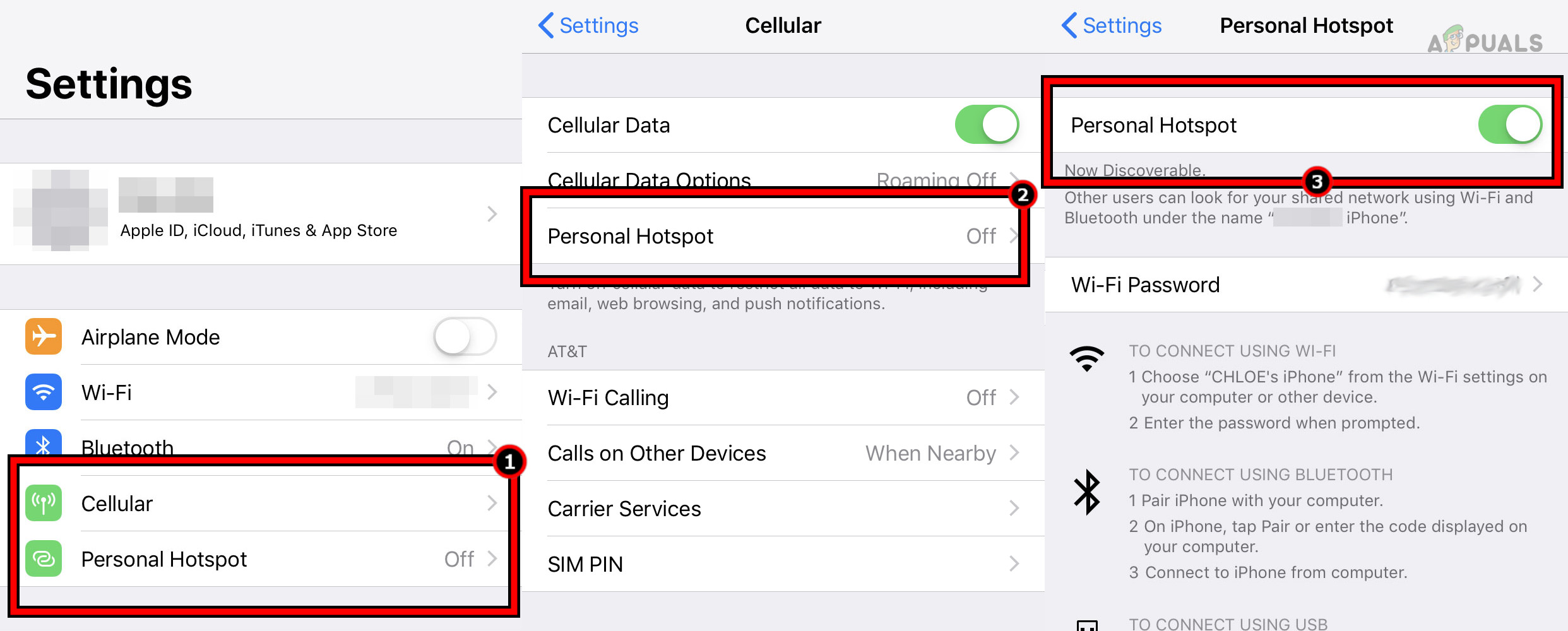2. Connect to a different Wi-Fi network (such as another phone’s hotspot) or try using mobile data if connectivity issues are suspected. Enable Hotspot on the iPhone