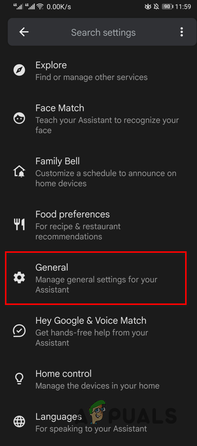 2. There, tap on the Google Assistant option. Navigating to Google Assistant Settings