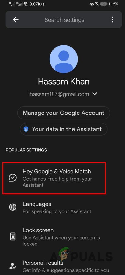 3. Now, once in the Google Assistant menu, tap on the Hey Google & Voice Match option provided at the top. Navigating to Hey Google Settings