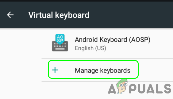 Open Virtual Keyboard Settings of the Phone - Then either you select Manage Keyboards (in case of Virtual Keyboard) or tap on Configure Input Method.