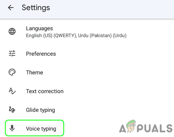 Open Voice Typing in the Gboard Settings - Afterward, confirm to disable Voice Typing and check if the Google Voice Typing is turned off. If your phone starts loading Assistant when you want to use Voice Typing, then make sure to disable Enhanced Voice Typing in the Gboard Settings. On an HTC phone, you may have to enable HTC SENSE INPUT.