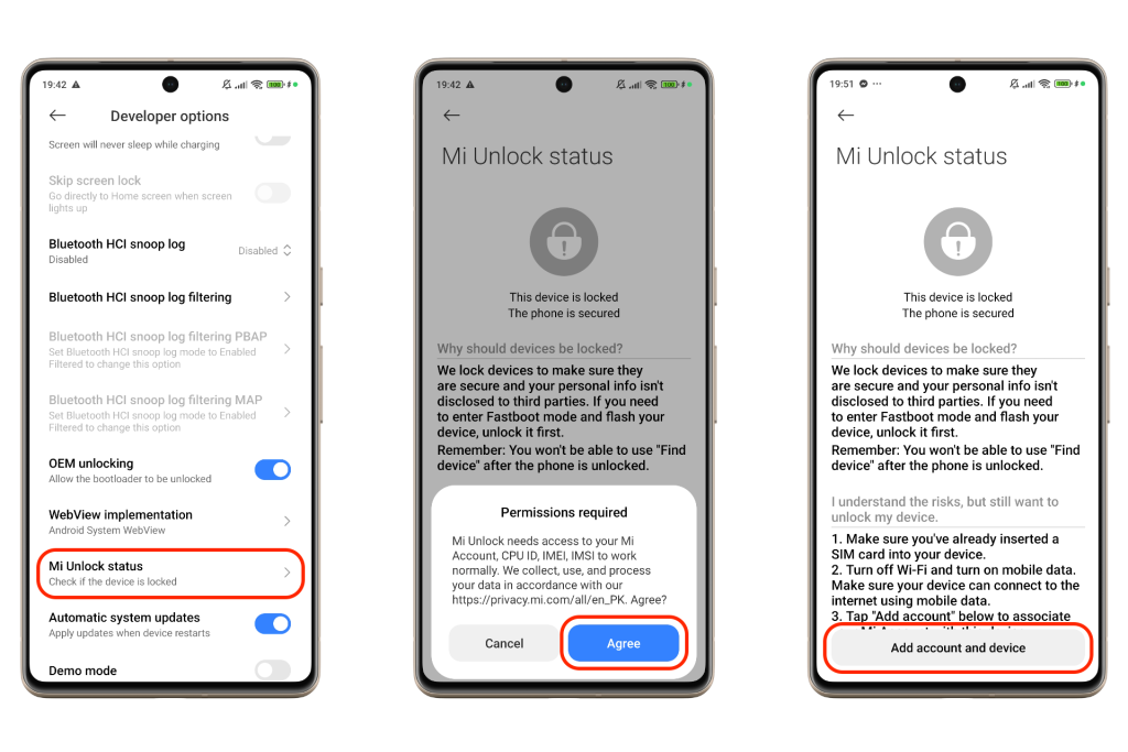 • Only three devices per Mi account can be unlocked, a minimum account age of 30 days is required for unlock requests, and a week-long waiting period is enforced after linking your device to your Mi account.