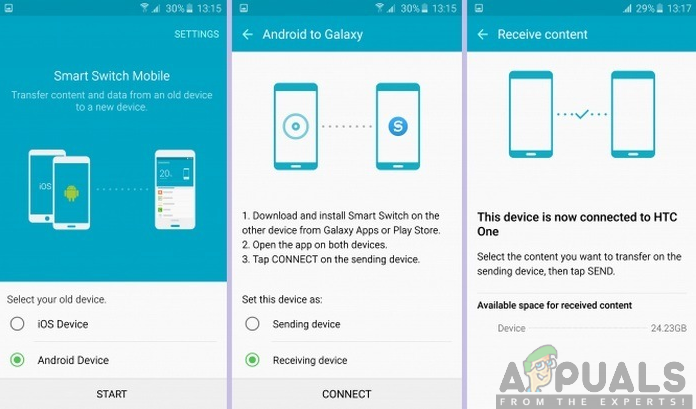 Next, you will have to prepare to perform the transfer of contents between the devices. To set up the transfer, you need to ensure that Smart Switch is open on both devices. Also, you will have to ensure the devices are in closer range and the transfer should be in a convenient place free from noise.