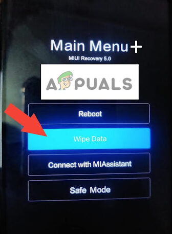 - Click on the Wipe Data, Go down by using the volume down key. Press the power button to select that option.