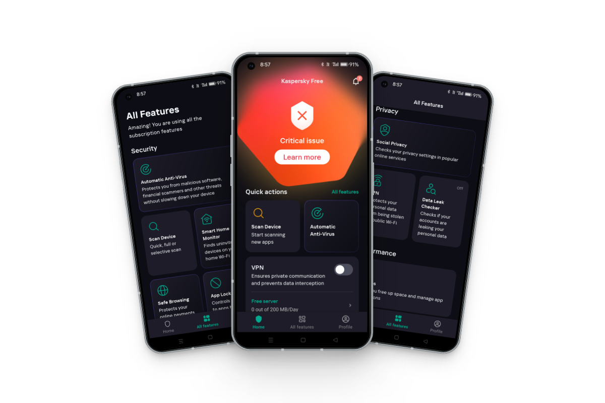 Kaspersky Security and VPN for Android offer a range of options, including a free tier alongside Kaspersky’s Plus and Standard versions. While premium features are available in paid plans, the free version offers essentials like device scanning and a Secure QR scanner, with a free VPN service included.