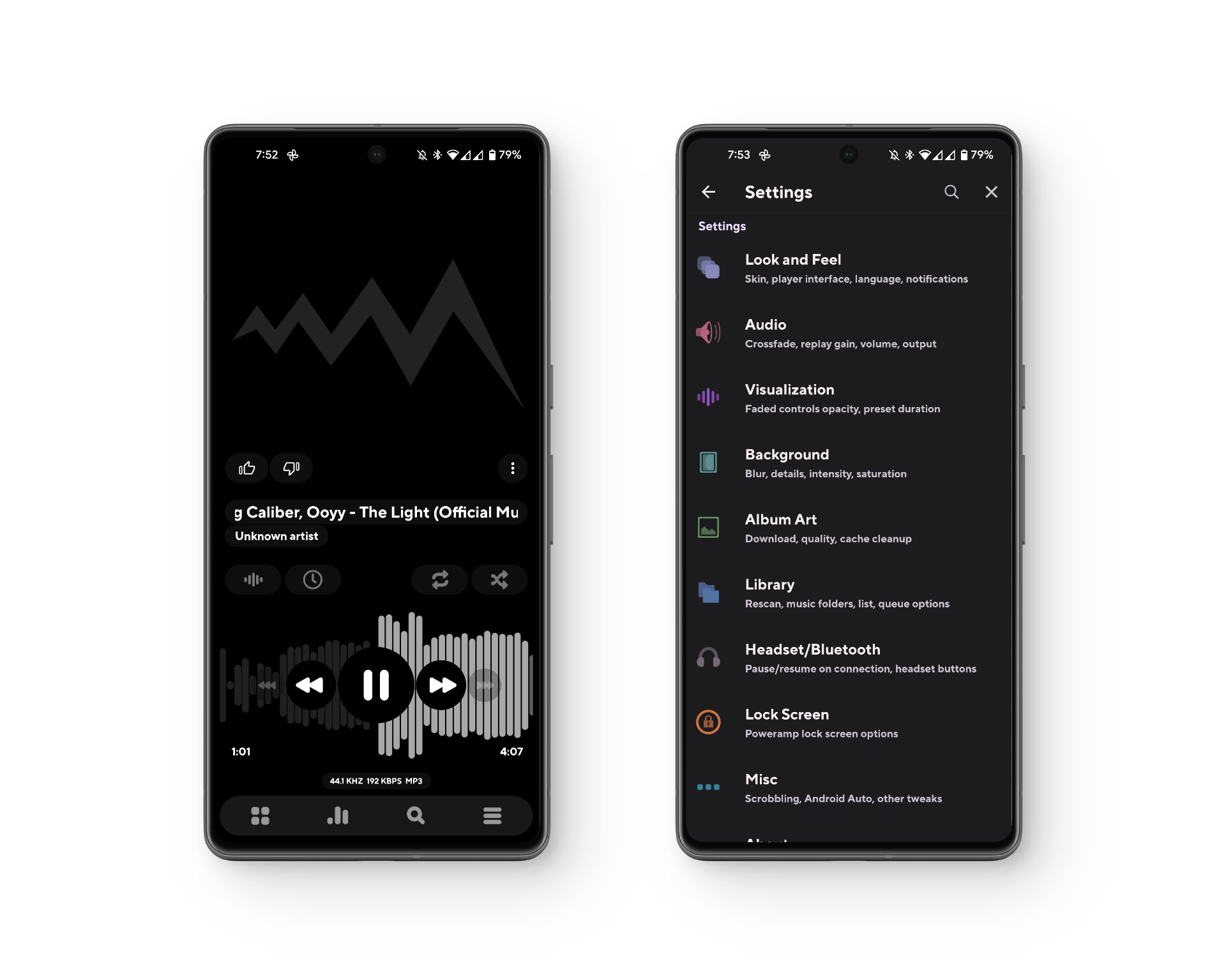 PlayerPro is well-known for its retro, 90s feel, and stands out as one of the oldest contenders in this roundup. Supporting Hi-Res audio up to 32-bit/364kHz and offering various customization options, the app is also compatible with Android Auto, Chromecast, and Google Assistant.