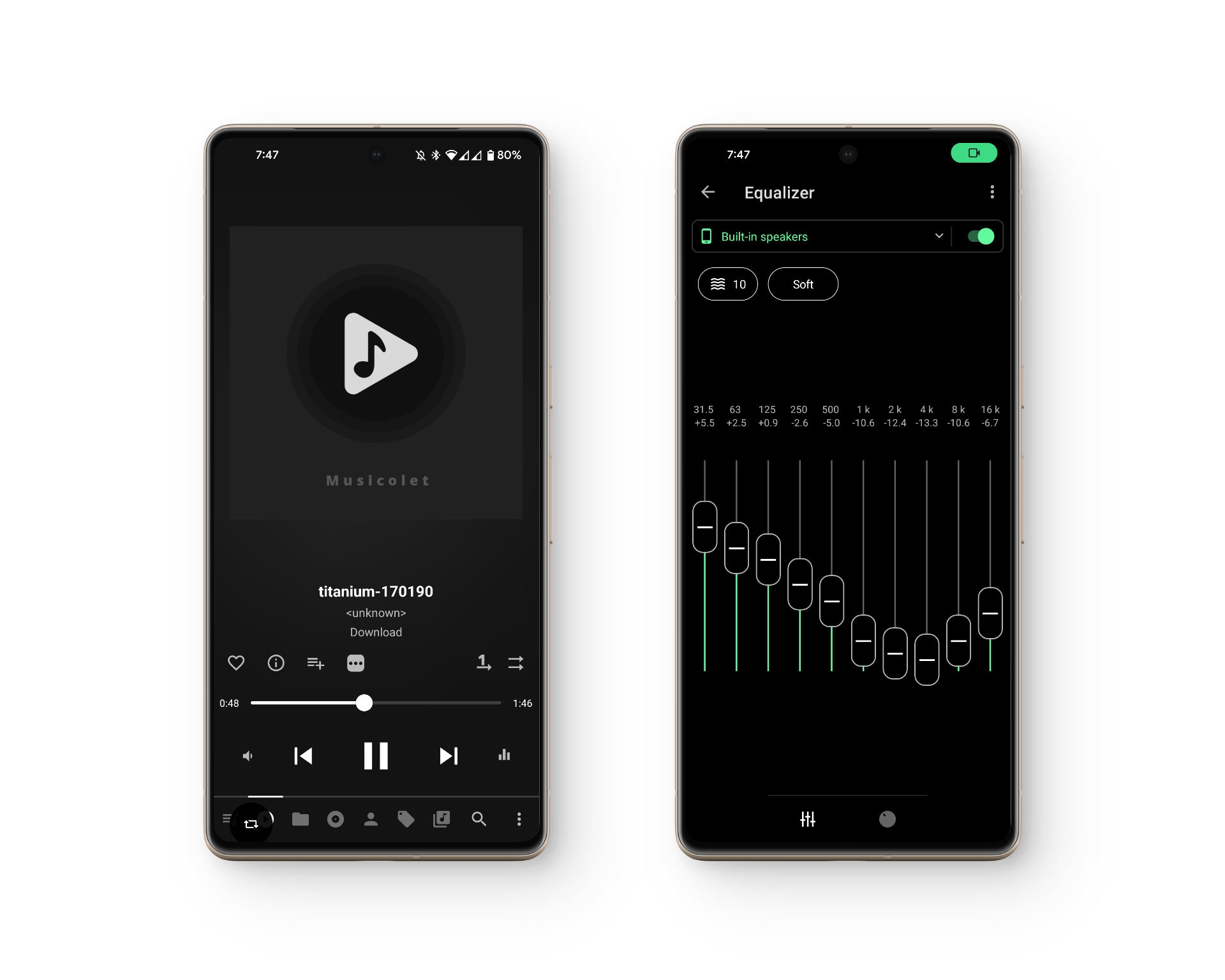 Musicolet allows users to set up multiple queues for different folders, albums, artists, or playlists, and supports distinct equalizer settings for various output devices like mobile speakers, headphones, or your car. It even integrates seamlessly with Android Auto for enhanced usability on the go.