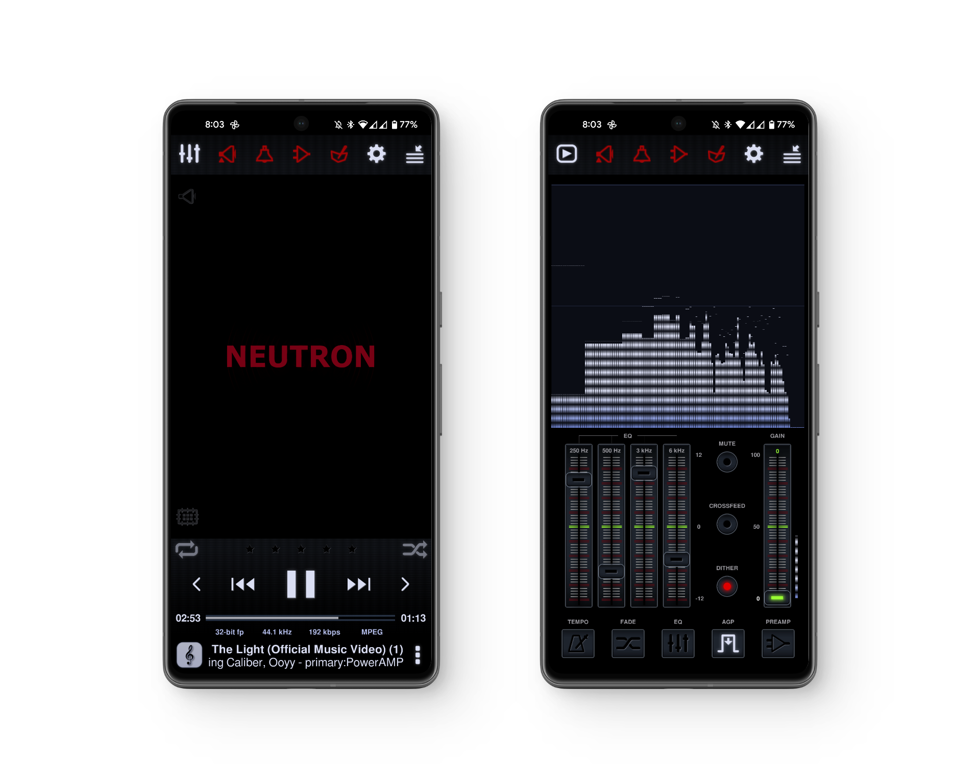 The Neutron Music Player is as close as you can get to audiophile-level quality on Android. It’s one of the most popular music players known for its own 32/64-bit Hi-Res audio engine, which functions independently of the standard Android music player API.