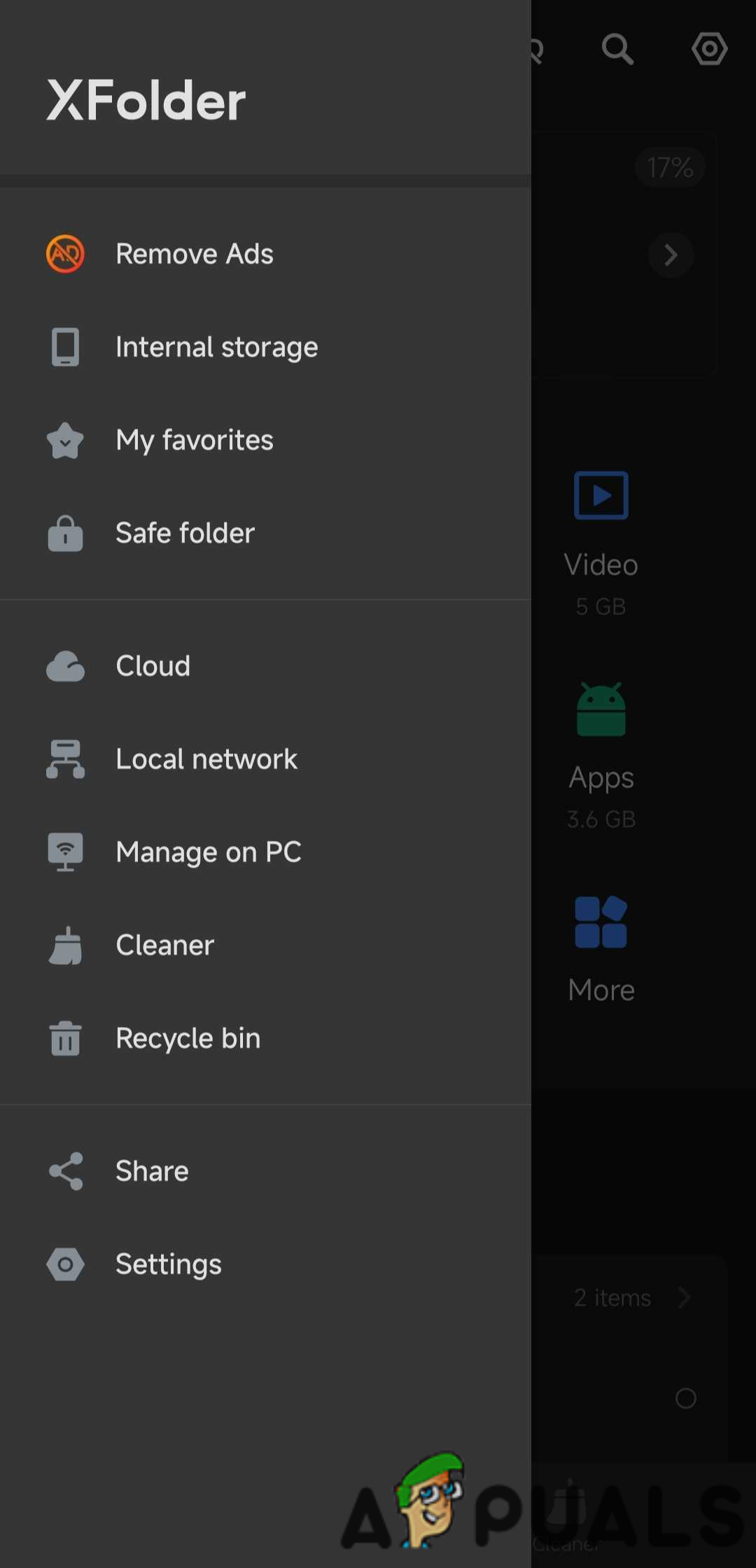 XFolder also provides cloud storage (Google Drive for now), local network access that allows you to manage files on your device using a local network and also the ability to manage files on a PC.