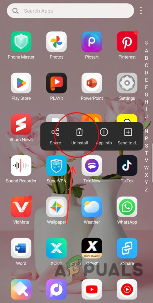 - Tap and hold the TextNow app, then select Uninstall.