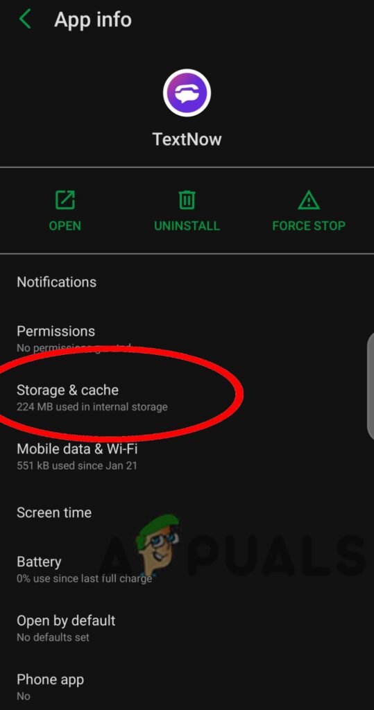 Tap on TextNow - On the app info page, tap on Storage.