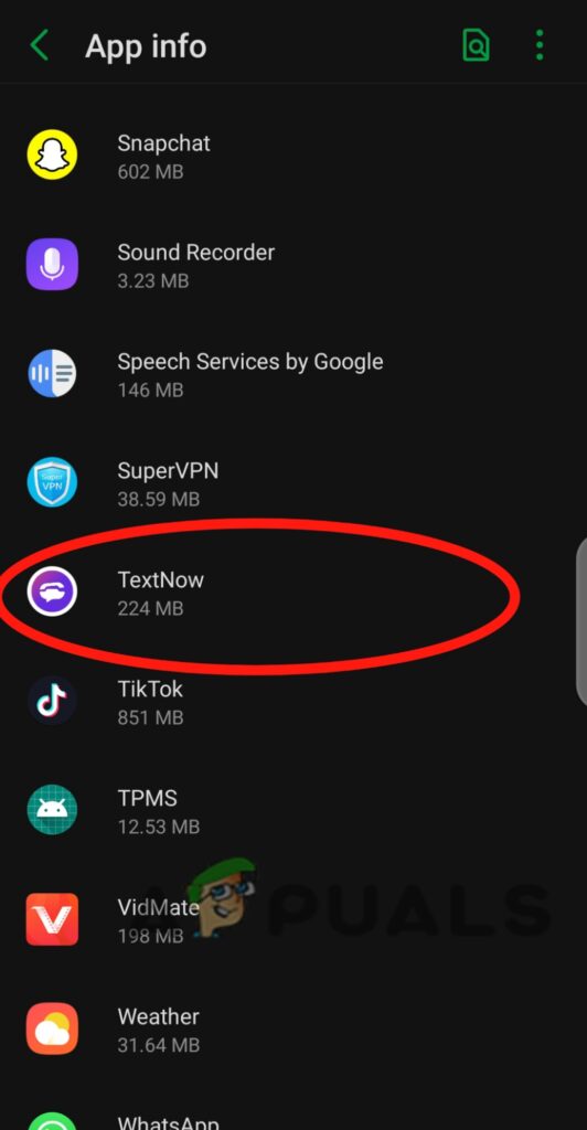 - Go to Settings > Apps > TextNow.