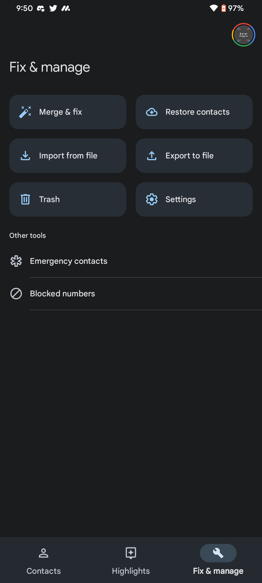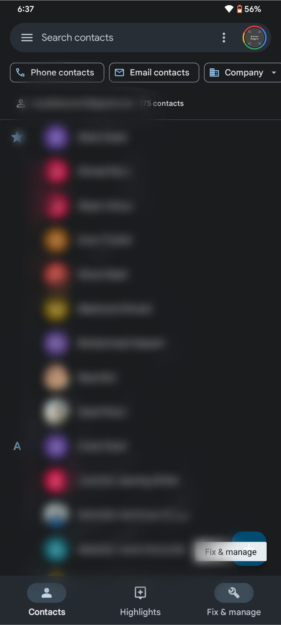 Most Android devices use Google Contacts as the default app. To export contacts using the Google Contacts app, open it and go to the “Fix & manage” tab, then select “Export to file.” Assign a filename and choose the destination location—that’s all you need to do!