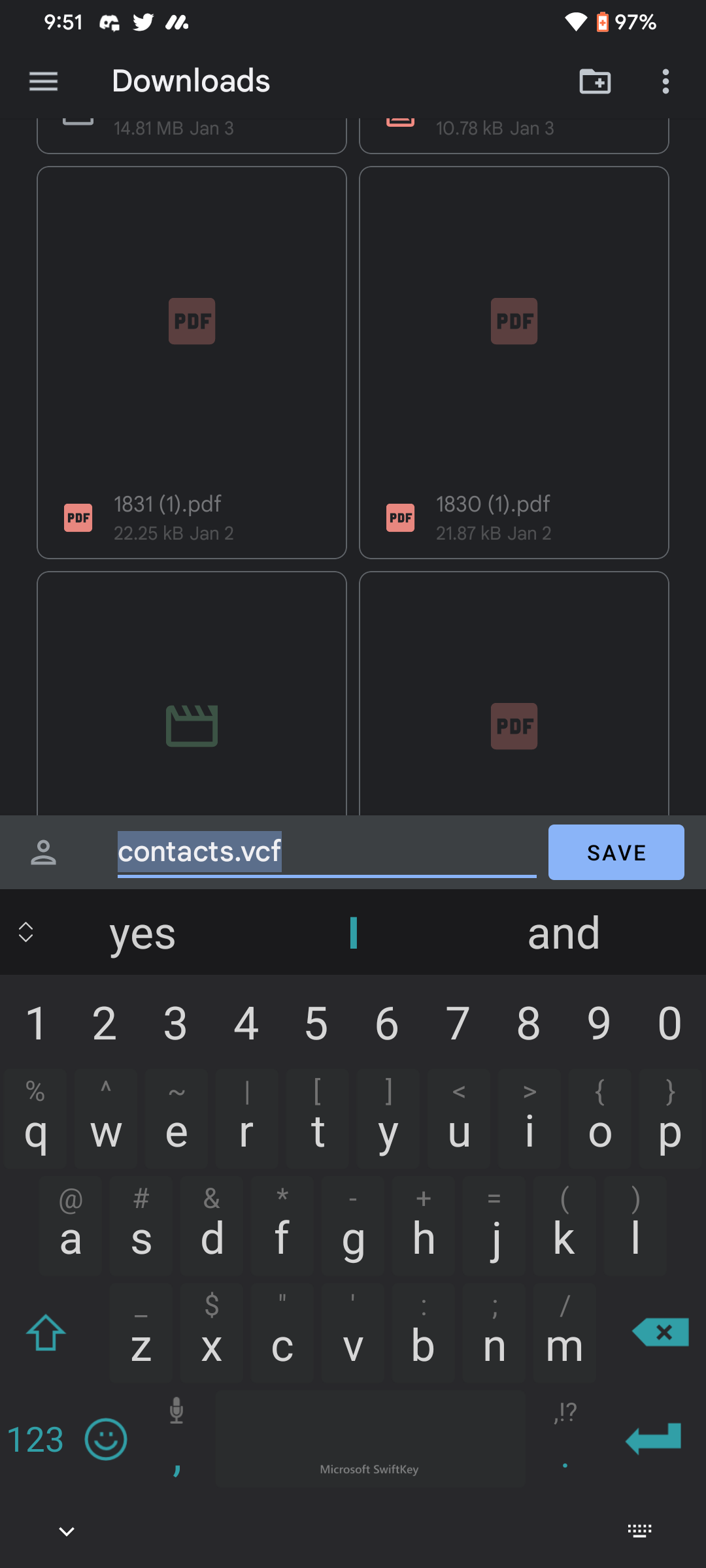 4. Select which contacts you wish to include and choose where to save the .vcf file.