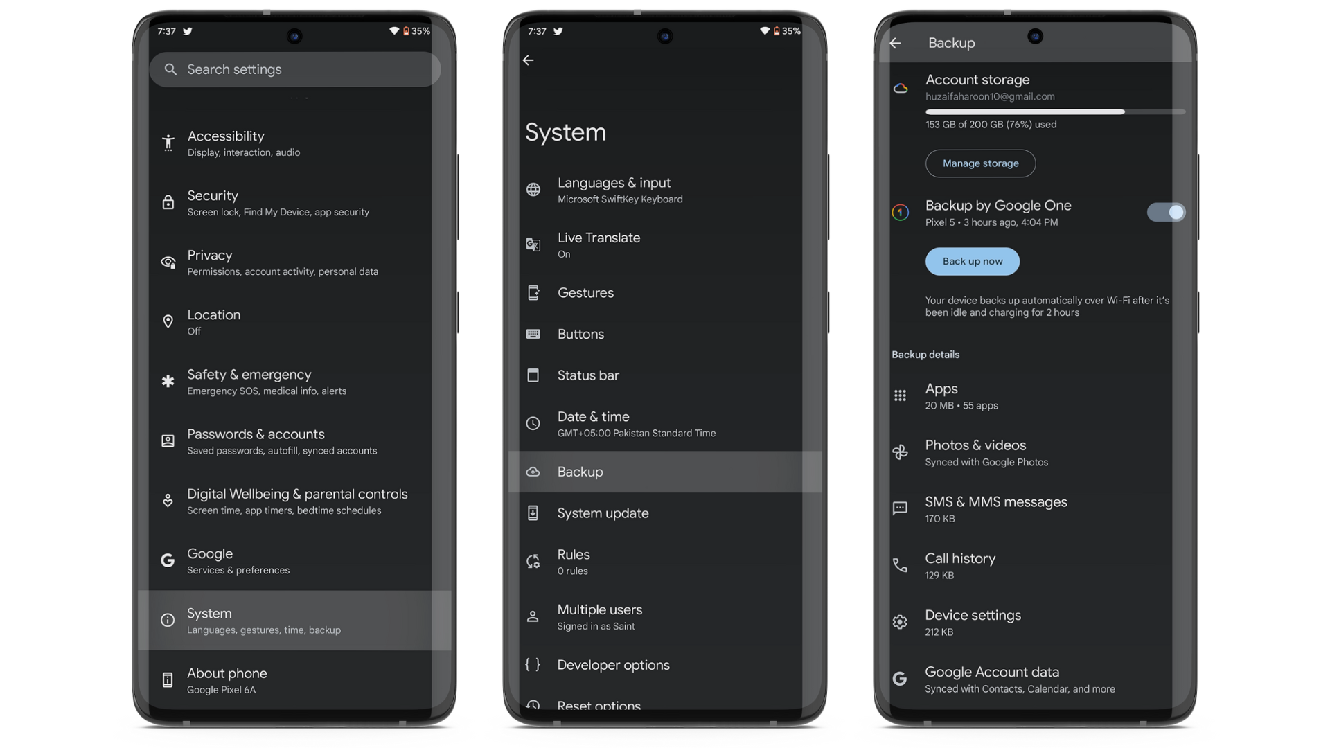 Most devices include Google’s built-in backup service under Settings > System > Backup