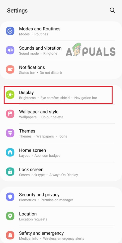 Go to Display - Scroll down to find the Adaptive brightness option. If it is ON, tap the toggle to turn it off.