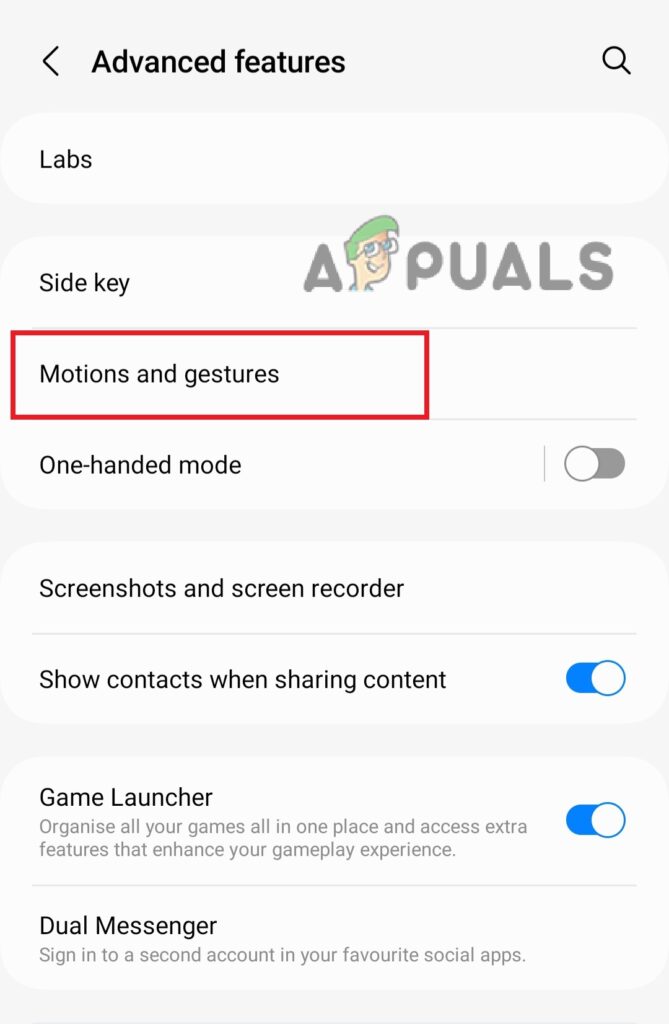 In Settings, go to Advanced features - Tap the Motions and gestures option.