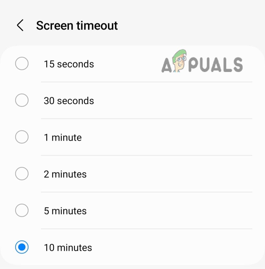 Select the Screen Timeout option - Here, you’ll see options for how long your screen stays on when inactive. The timing options are usually listed in seconds or minutes.