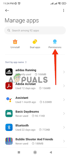 - Now, tap on the Permissions icon at the top right corner of the screen.